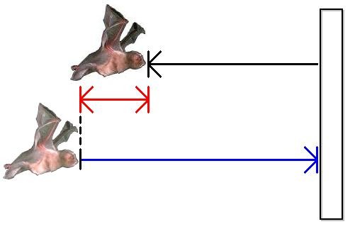 蝙蝠聽到的回聲一定是更早之前自己發出來的,這也要考慮進去。