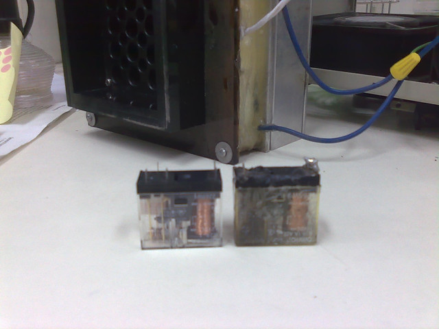 左邊是電子材料行買來的新品,右邊是從儀器上拆下來的舊品,有很明顯的燒焦痕跡。