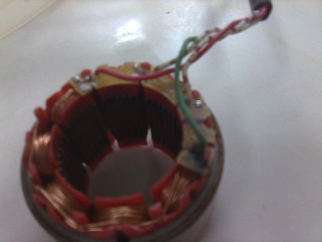 馬達前端有固結成膏狀的培養基,後端有鹽類結晶。不能運作也是很合理地,連漆包線表面都有膏狀的培養基。